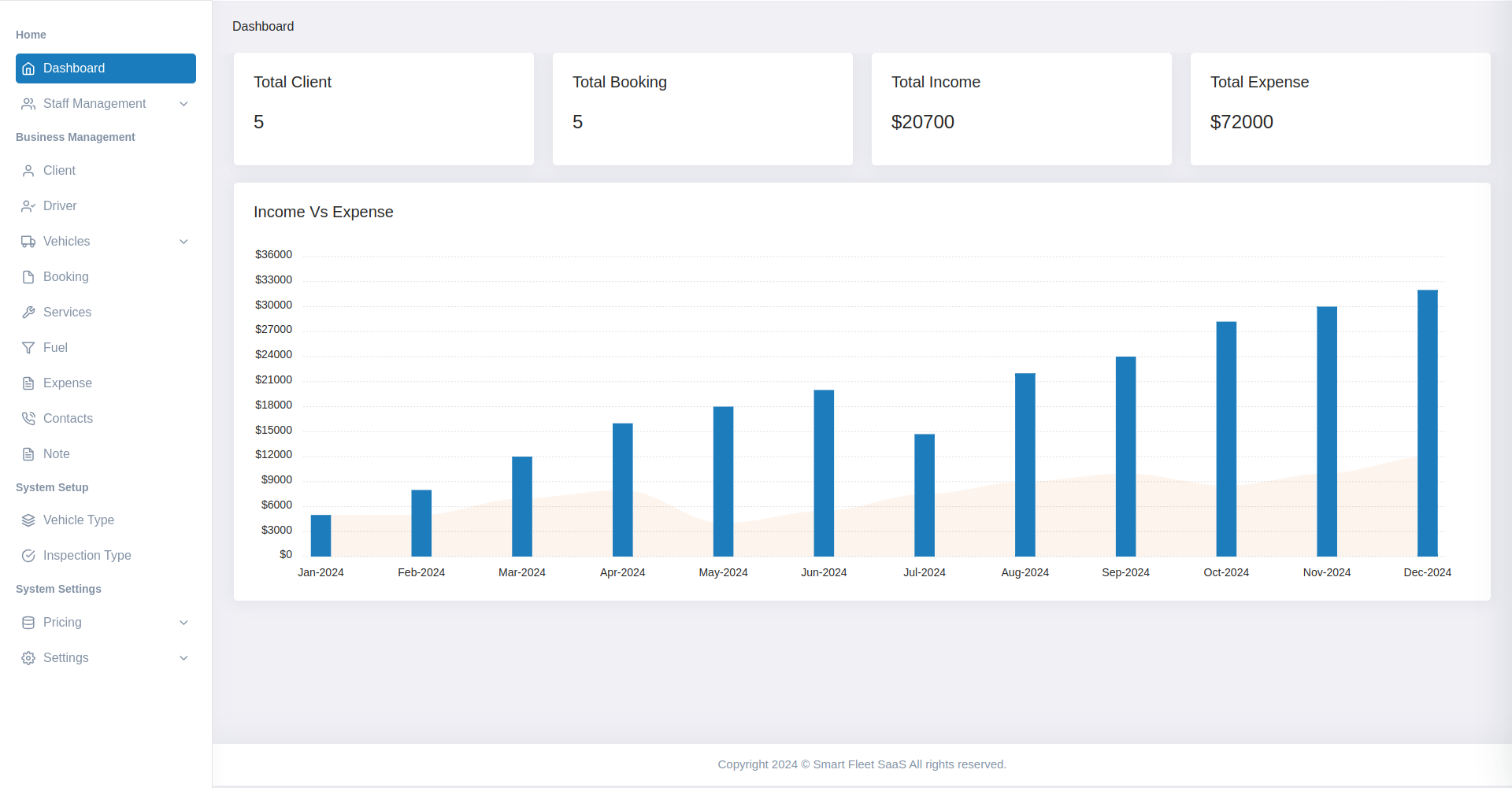Smart Fleet system is provides functionalities for organizing, monitoring, and maintaining vehicles, including features such as vehicle registration, tracking, maintenance scheduling, driver management, and reporting.